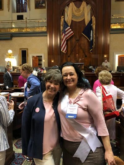 Beautiful day at the SCFRW Legislative Day event. Our own Peggy Upchurch was acting President in Donna Gottschall’s absence. Our member, Patty Weaver Roberts enjoyed a laid-back moment on the front porch of the Governor’s Mansion with our SC First Lady Peggy McMaster and the SC First Dog Mack.